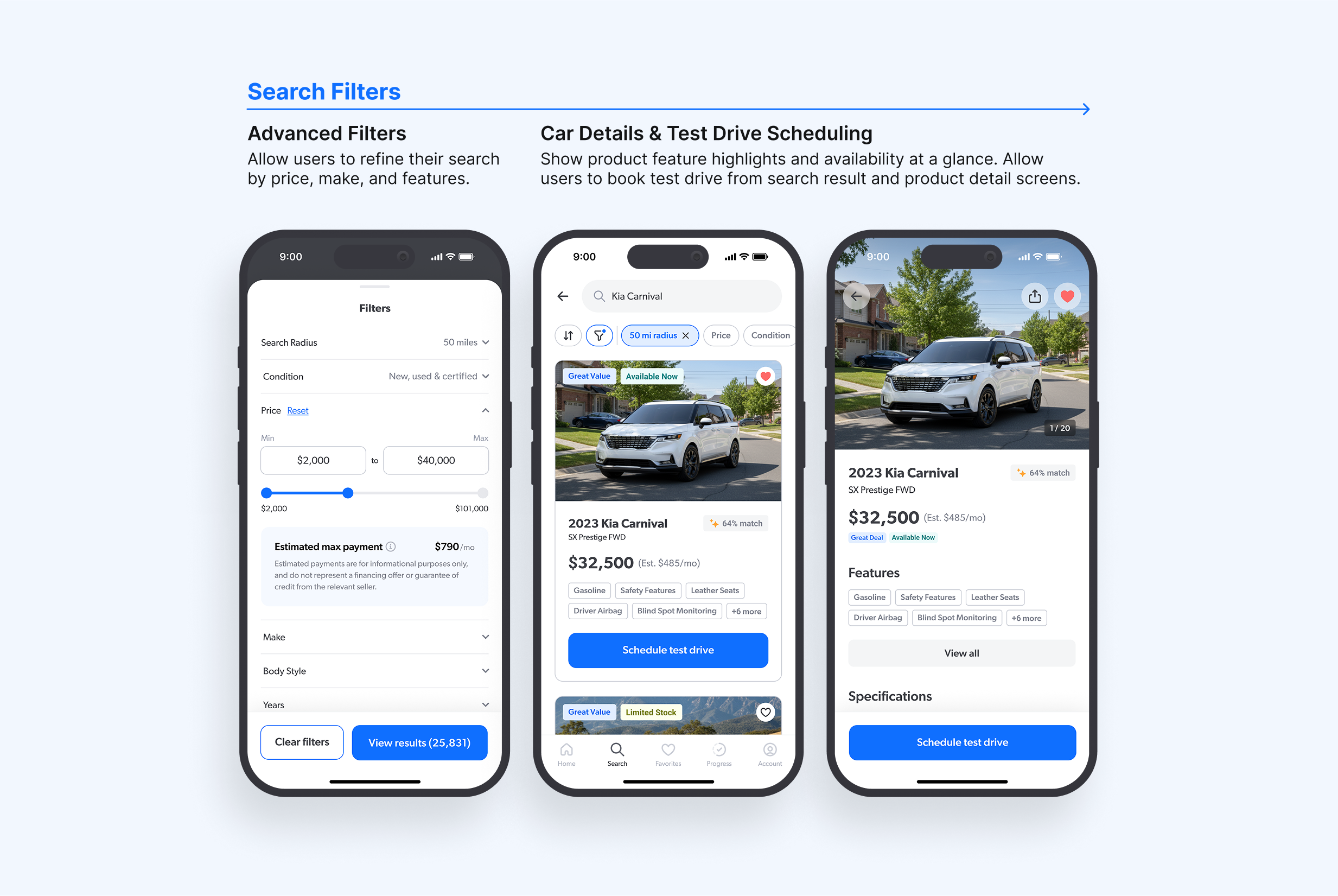 Building on the insights from peer and heuristic reviews, I refined the details that most impacted buyer confidence. The final solution translates validated concepts into a highly personalized, transparent, and streamlined experience that addresses core buyer frustrations while aligning with dealership workflows.
