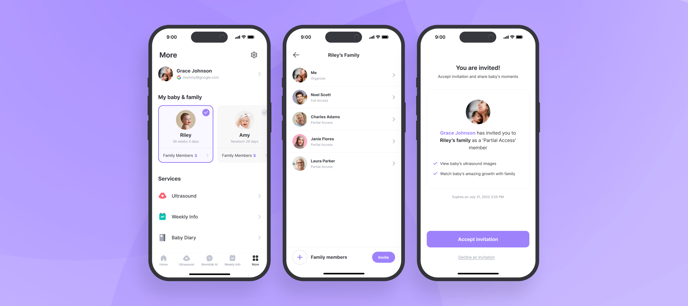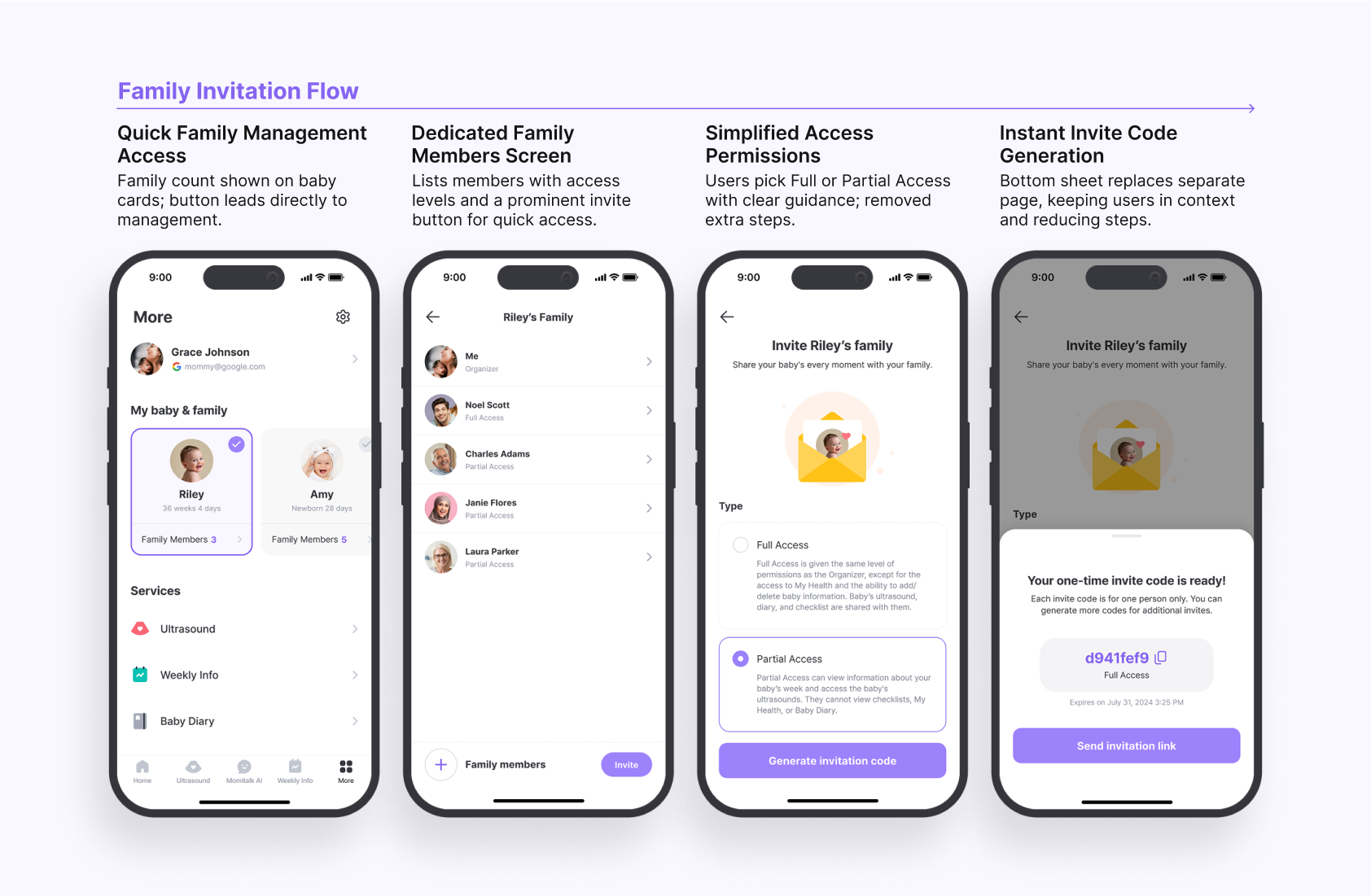 Redesigning invitation and profile flows to help expectant families connect faster through fewer steps, clearer access levels, and easier collaboration