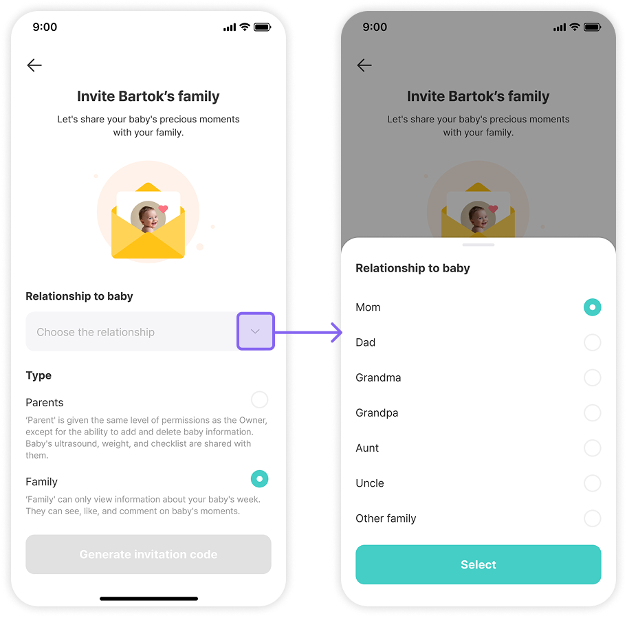 Step #2: Navigating through Baby Profiles to Family Invitation