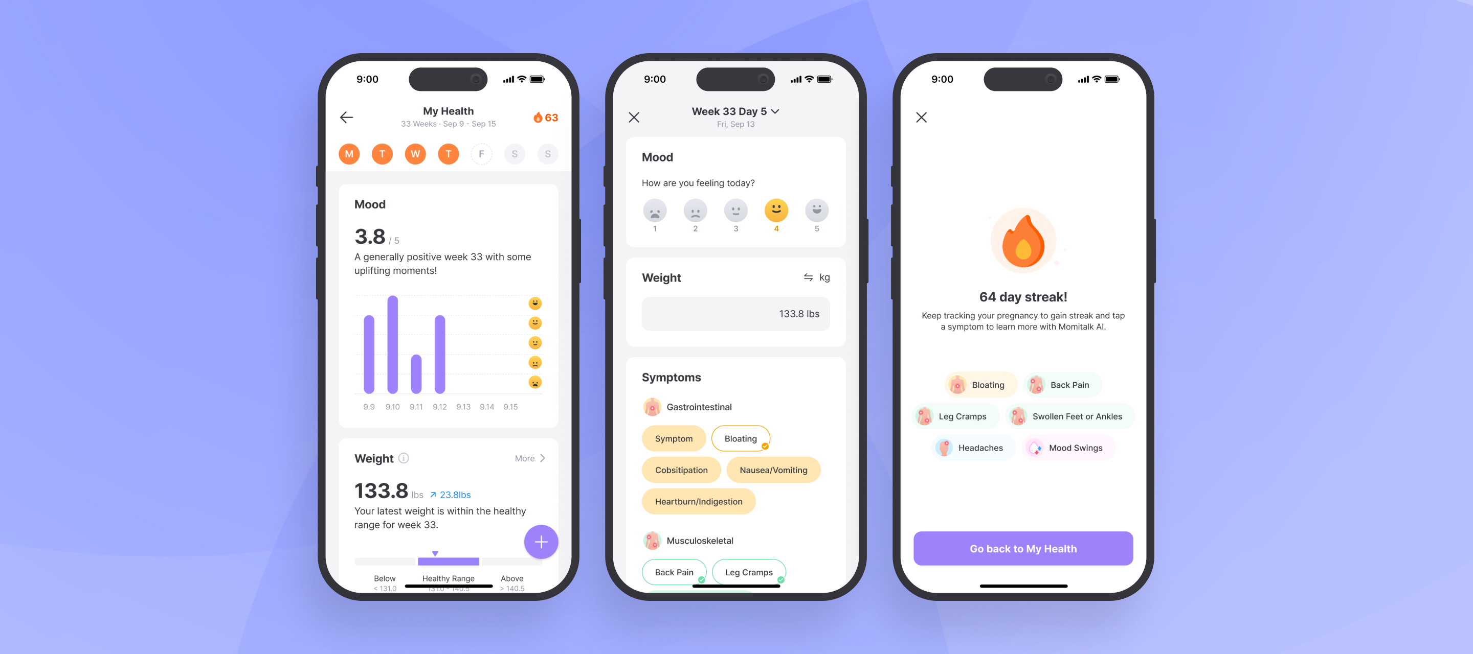 Users want to see their data in the context of their pregnancy journey. Including emotional and symptomatic tracking creates richer context and relevance.