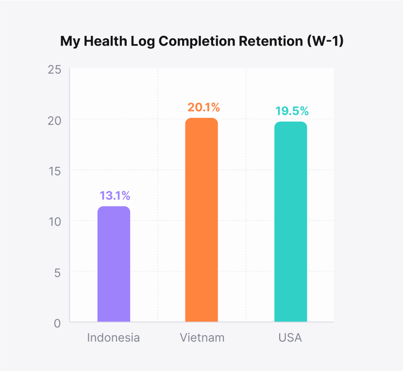 The revamped logging feature, My Health, significantly improved user engagement and retention across all regions. By introducing intuitive logging, habit-forming elements, and actionable insights, users were more likely to visit the My Health tab and complete logs consistently. These results validate the importance of seamless tracking, motivation-driven features, and clear health insights in driving long-term user adoption.